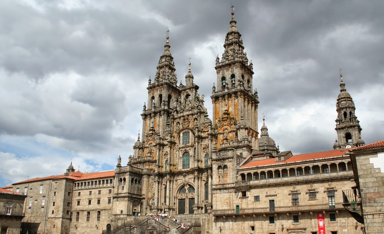 Nejslavnější španělský chrám Santiago de Compostela má dispozici velmi blízkou francouzským kostelům podél poutní cesty, zvláště k Saint-Serninu v Toulouse (valená klenba, tribuny, věž nad křížením, ochoz s kaplemi).